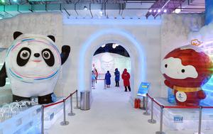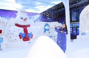 (250709) -- HARBIN, 9 julio, 2025 (Xinhua) -- Una turista juega con nieve artificial en la galería de arte de...
