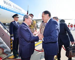(250709) -- EL CAIRO, 9 julio, 2025 (Xinhua) -- El primer ministro chino, Li Qiang, llega al Aeropuerto Internacional de...