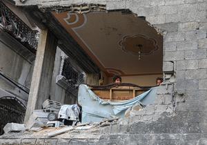 (250709) -- GAZA, 9 julio, 2025 (Xinhua) -- Niños palestinos son vistos en el interior de un edificio dañado en...