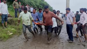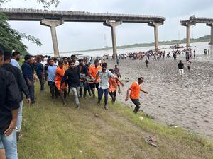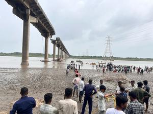 (250709) -- NUEVA DELHI, 9 julio, 2025 (Xinhua) -- Rescatistas trabajan cerca del sitio del colapso de un puente, en...