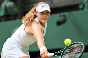 (250709) -- LONDRES, 9 julio, 2025 (Xinhua) -- Mirra Andreeva devuelve la pelota durante el partido de cuartos de final...