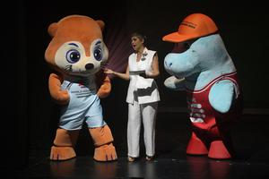 (250710) -- SINGAPUR, 10 julio, 2025 (Xinhua) -- Las mascotas oficiales, la nutria Ollie (i), y el dugongo Dewey (d),...