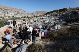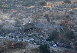 (250710) -- NAPLUSA, 10 julio, 2025 (Xinhua) -- Imagen del 9 de julio de 2025 de una excavadora israelí demoliendo...