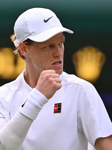 (250710) -- LONDRES, 10 julio, 2025 (Xinhua) -- Imagen del 9 de julio de 2025 de Jannik Sinner reaccionando durante...