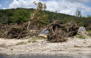 (250712) -- HOUSTON, 12 julio, 2025 (Xinhua) -- Imagen del 11 de julio de 2025 de trozos de una carretera...