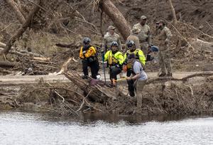 (250712) -- HOUSTON, 12 julio, 2025 (Xinhua) -- Imagen del 11 de julio de 2025 de rescatistas buscando cuerpos entre...