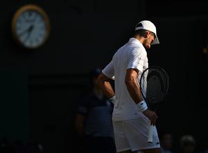 (250712) -- LONDRES, 12 julio, 2025 (Xinhua) -- Imagen del 11 de julio de 2025 de Novak Djokovic reaccionando durante...