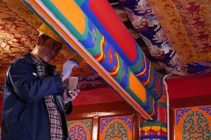 (250711) -- XIAHE, 11 julio, 2025 (Xinhua) -- Imagen del 10 de julio de 2025 de un trabajador reparando las...
