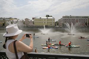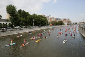 (250713) -- MOSCÚ, 13 julio, 2025 (Xinhua) -- Personas participan en el desfile de SUP (surf de remo), en Moscú,...