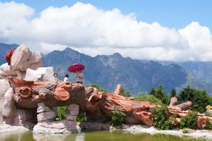 (250713) -- ZHOUQU, 13 julio, 2025 (Xinhua) -- Imagen del 12 de julio de 2025 de turistas visitando la Montaña...