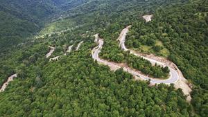 (250713) -- ZHOUQU, 13 julio, 2025 (Xinhua) -- Vista aérea tomada con un dron el 12 de julio de 2025...