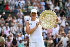 (250713) -- LONDRES, 13 julio, 2025 (Xinhua) -- Imagen del 12 de julio de 2025 de Iga Swiatek posando con...