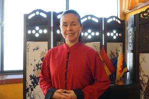 (250714) -- LA PAZ, 14 julio, 2025 (Xinhua) -- Imagen del 10 de julio de 2025 de la vicepresidenta de la Asociación de Kung Fu Shaolin Quan Bolivia, Cecilia Pinedo, posando para una fotografía en la Comunidad Educativa Chino-Boliviana Sariri, en la ciudad de La Paz, Bolivia. Niñas, niños y adolescentes bolivianos saludan en idioma chino, entonan el himno nacional en tres lenguas, meditan con serenidad y ejecutan con precisión movimientos del ancestral arte marcial chino Kung Fu Shaolin como parte de una formación integral que une cuerpo, mente y cultura. (Xinhua/René Quenallata Paredes) (rtg) (ah) (vf)