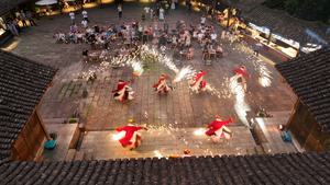 (250714) -- BEIJING, 14 julio, 2025 (Xinhua) -- Imagen tomada con un dron el 12 de julio de 2025 de visitantes observando una presentación en un punto escénico, en el distrito autónomo tujia y miao de Youyang, en la municipalidad de Chongqing, en el suroeste de China. Las altas temperaturas durante las vacaciones de verano han revitalizado la economía para refrescarse en todo el país. (Xinhua/Qiu Hongbin) (rtg) (ah) (ce)