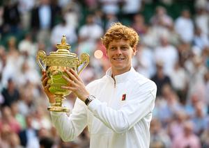 (250714) -- LONDRES, 14 julio, 2025 (Xinhua) -- Imagen del 13 de julio de 2025 de Jannik Sinner posando con el trofeo después de ganar la final de individuales masculinos entre Carlos Alcaraz, de España, y Jannik Sinner, de Italia, en el Campeonato de Tenis de Wimbledon, en Londres, Reino Unido. (Xinhua/Li Ying) (oa) (ah) (vf)