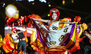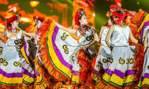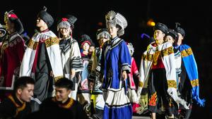 (250719) -- LIUPANSHUI, 19 julio, 2025 (Xinhua) -- Imagen del 18 de julio de 2025 de artistas realizando una presentación...