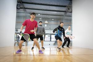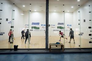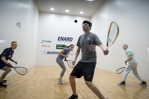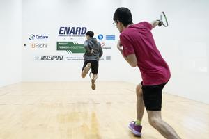 (250719) -- BUENOS AIRES, 19 julio, 2025 (Xinhua) -- Personas practican racquetball, en una de las canchas instaladas en el...