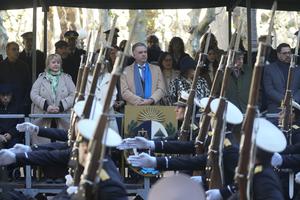 (250718) -- MONTEVIDEO, 18 julio, 2025 (Xinhua) -- El presidente uruguayo, Yamandú Orsi (c), participa durante el 195° aniversario de...