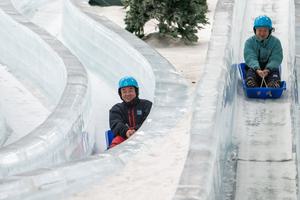 (250717) -- CHANGSHA, 17 julio, 2025 (Xinhua) -- Personas juegan en una estación de esquí cubierta, en Changsha, en la...