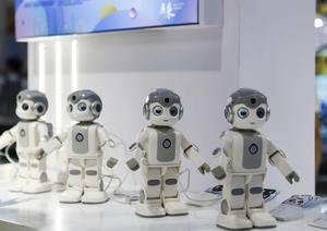 (250717) -- BEIJING, 17 julio, 2025 (Xinhua) -- Imagen del 16 de julio de 2025 robots humanoides de escritorio vistos...