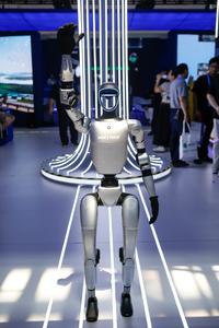 (250717) -- BEIJING, 17 julio, 2025 (Xinhua) -- Un robot de Unitree Robotics es visto en el área de Cadena...