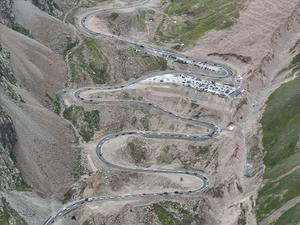 (250717) -- KUQA, 17 julio, 2025 (Xinhua) -- Vista aérea tomada con un dron de una sección de la autopista...