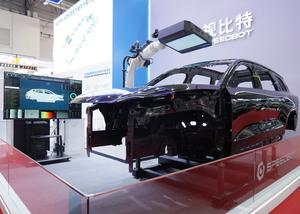 (250717) -- BEIJING, 17 julio, 2025 (Xinhua) -- Una demostración del sistema Paintpro, que detecta y repara defectos de pintura...