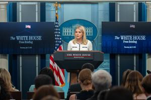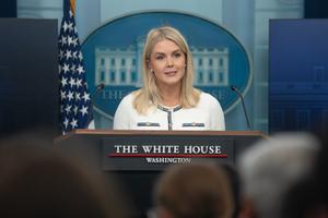 (250717) -- WASHINGTON, 17 julio, 2025 (Xinhua) -- La secretaria de Prensa de la Casa Blanca, Karoline Leavitt, habla durante...