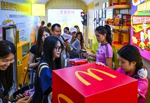 (250719) -- BEIJING, 19 julio, 2025 (Xinhua) -- Personas visitan el estand de McDonald's en el área de Cadena Agrícola...