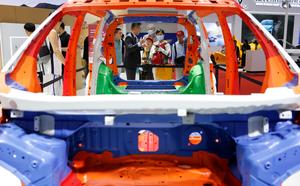 (250719) -- BEIJING, 19 julio, 2025 (Xinhua) -- Visitantes se informan sobre la carrocería de un automóvil en el estand...