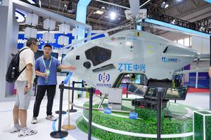 (250719) -- BEIJING, 19 julio, 2025 (Xinhua) -- Un visitante se informa sobre una plataforma de rescate y respuesta a...
