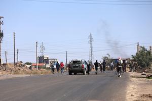 (250719) -- SWEIDA, 19 julio, 2025 (Xinhua) -- Imagen del 18 de julio de 2025 de combatientes tribales caminando por...