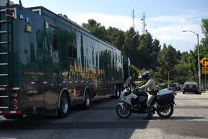 (250719) -- LOS ANGELES, 19 julio, 2025 (Xinhua) -- Imagen del 18 de julio de 2025 de un agente montando...