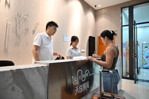 (250716) -- TIANJIN, 16 julio, 2025 (Xinhua) -- Imagen del 15 de julio de 2025 de una mujer registrándose en...