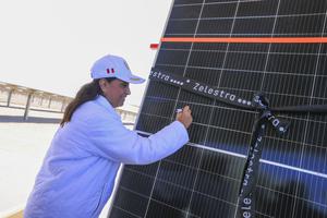 (250717) -- REGION AREQUIPA, 17 julio, 2025 (Xinhua) -- Imagen proveída por la Presidencia de Perú de la presidenta peruana, Dina Boluarte, encabezando la inauguración de la Central Solar Fotovoltaica "San Martín", en la región Arequipa, Perú, el 17 de julio de 2025. Boluarte aseguró el jueves que su Gobierno continúa comprometido en impulsar proyectos que promuevan el uso de energías renovables en el país, tras inaugurar en la región Arequipa la Central Solar Fotovoltaica "San Martín". (Xinhua/Presidencia de Perú) (jg) (ah) (ce)