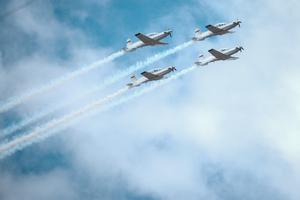 (250720) -- BOGOTA, 20 julio, 2025 (Xinhua) -- Aviones de las Fuerzas Armadas de Colombia participan durante el desfile militar...