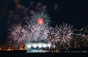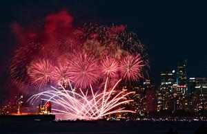 (250720) -- VANCOUVER, 20 julio, 2025 (Xinhua) -- Imagen del 19 de julio de 2025 de fuegos artificiales iluminando el...