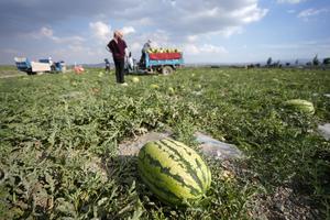 (250721) -- ZHONGWEI, 21 julio, 2025 (Xinhua) -- Imagen del 20 de julio de 2025 de agricultores cosechando sandías Xisha,...