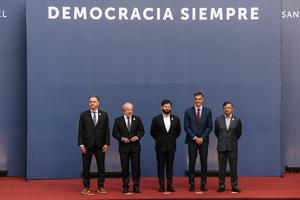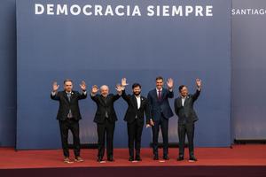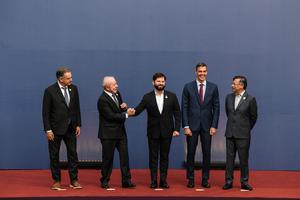 (250721) -- SANTIAGO, 21 julio, 2025 (Xinhua) -- (De izq. a der.) El presidente uruguayo, Yamandú Orsi, el presidente brasileño,...