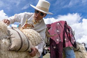 (250721) -- NGARI, 21 julio, 2025 (Xinhua) -- Imagen del 20 de julio de 2025 de un pastor atando sal...