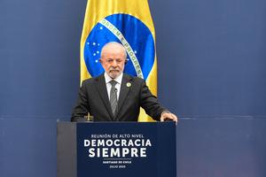 (250721) -- SANTIAGO, 21 julio, 2025 (Xinhua) -- El presidente brasileño, Luiz Inácio Lula da Silva, participa durante una declaración...