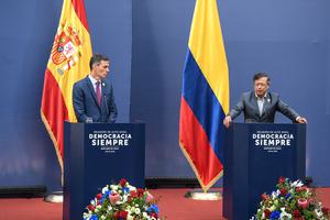 (250721) -- SANTIAGO, 21 julio, 2025 (Xinhua) -- El presidente del Gobierno español, Pedro Sánchez (i), y el presidente colombiano,...