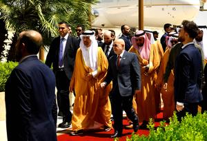 (250723) -- DAMASCO, 23 julio, 2025 (Xinhua) -- Una delegación saudita llega al Aeropuerto Internacional de Damasco, en Damasco, Siria,...
