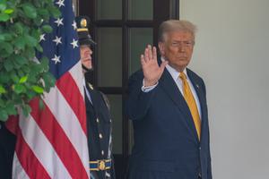 (250722) -- WASHINGTON, 22 julio, 2025 (Xinhua) -- El presidente estadounidense, Donald Trump (d), saluda mientras espera la llegada del...