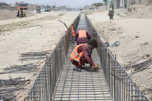 (250723) -- KABUL, 23 julio, 2025 (Xinhua) -- Trabajadores afganos desarrollan un proyecto de construcción de carreteras, en Kabul, Afganistán,...