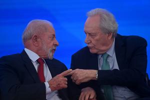 (250723) -- BRASILIA, 23 julio, 2025 (Xinhua) -- El presidente brasileño, Luiz Inácio Lula da Silva (i), conversa con el...