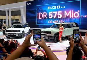 (250723) -- TANGERANG, 23 julio, 2025 (Xinhua) -- Personas visitan el estand de la marca de automóviles china BAIC durante...