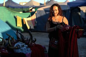 (250726) -- LA TIRANA, 26 julio, 2025 (Xinhua) -- Imagen del 15 de julio de 2025 de la artesana María Rivera sosteniendo caretas elaboradas por ella durante una entrevista con la Agencia de Noticias Xinhua, en el poblado de La Tirana, en la comuna de Pozo Almonte, en la región de Tarapacá, Chile. Cada vez que identifica una de sus caretas en los bailes, María Rivera hincha su pecho de orgullo, porque la artesana es una de las cientos de personas anónimas que le dan vida a la Fiesta de La Tirana, la celebración religiosa más importante del país sudamericano. (Xinhua/Jorge Villegas) (jv) (rtg) (da)