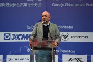 (250726) -- SANTIAGO, 26 julio, 2025 (Xinhua) -- Imagen del 25 de julio de 2025 del subsecretario del Ministerio de Transporte y Telecomunicaciones chileno, Jorge Daza, pronunciando un discurso durante la ceremonia de apertura de la Segunda Exposición Itinerante Internacional de Automóviles Chinos 2025, en Santiago, capital de Chile. La Segunda Exposición Itinerante Internacional de Automóviles Chinos 2025 organizada por el Consejo Chino para el Fomento del Comercio Internacional, en la que participan quince marcas de autos chinos con una amplia variedad de unidades híbridas y eléctricas, se realiza en el país sudamericano entre el 24 y 27 de julio. (Xinhua/Jorge Villegas) (jv) (oa) (da)