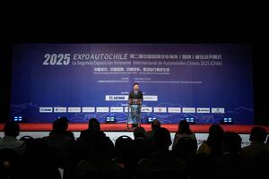 (250726) -- SANTIAGO, 26 julio, 2025 (Xinhua) -- Imagen del 25 de julio de 2025 del consejero económico y comercial de la Embajada de China en Chile, Ma Keqiang, pronunciando un discurso durante la ceremonia de apertura de la Segunda Exposición Itinerante Internacional de Automóviles Chinos 2025, en Santiago, capital de Chile. La Segunda Exposición Itinerante Internacional de Automóviles Chinos 2025 organizada por el Consejo Chino para el Fomento del Comercio Internacional, en la que participan quince marcas de autos chinos con una amplia variedad de unidades híbridas y eléctricas, se realiza en el país sudamericano entre el 24 y 27 de julio. (Xinhua/Jorge Villegas) (jv) (oa) (da)